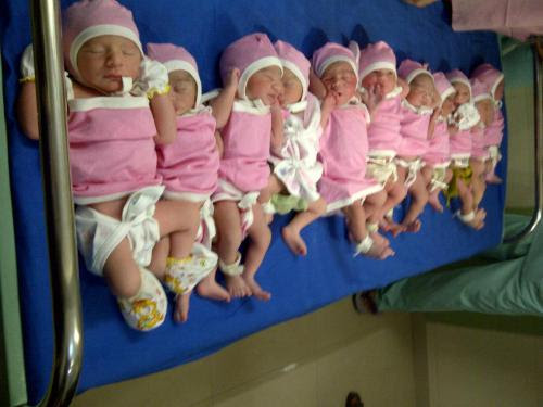$Ajaib seorang ibu melahirkan sebelas bayi sekaligus. Yang agak langka 11 bayi ini lahir pada tanggal 11 bulan 11 tahun 2011. Kejadian ini terjadi di india tahun 2011 yang lewat. Yakinkah sobat atau ini kerjaan dari photoshop.? Dilihat dari gambarnya sepertinya asli bukan rekayasa. Soalnya ini dicatatkan pada Guinness Book of World Records disertai bukti bahwa benar 11 bayi yang lahir tersebut dilahirkan dari seorang ibu. yang buat unik 11 bayi lahir pada 11 Nopember 2011 ( 11/11/11 ). Apakah mungkin seorang wanita bisa membawa 11 janin dalam rahimnya?